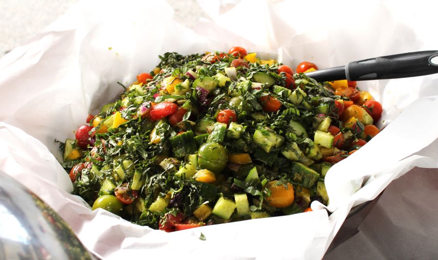 - Tomato, Basil and Cucumber Panzanella with a Balsamic Vinaigrette